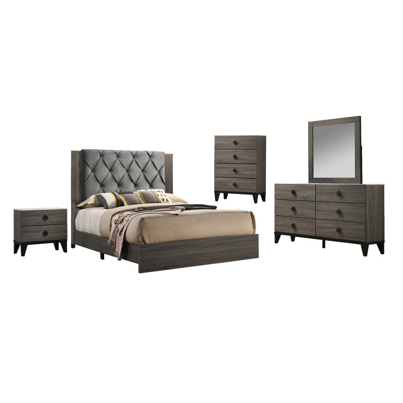 Smither Standard 5 Piece Bedroom Set / Vachel Standard Configurable Bedroom Set | 5 piece bedroom ... - King poster storage bed ia07.. Get 5% in rewards with club o! 5 piece bedrooms include a headboard, footboard, bed rails, dresser, and mirror. These complete furniture collections include everything you need to outfit the entire bedroom in coordinating style. This beautiful bedroom set has a wonderful lighted color that keeps your bedroom looking bright and spacious. Enjoy free shipping on most stuff, even big stuff.